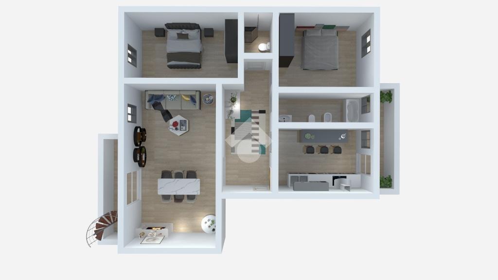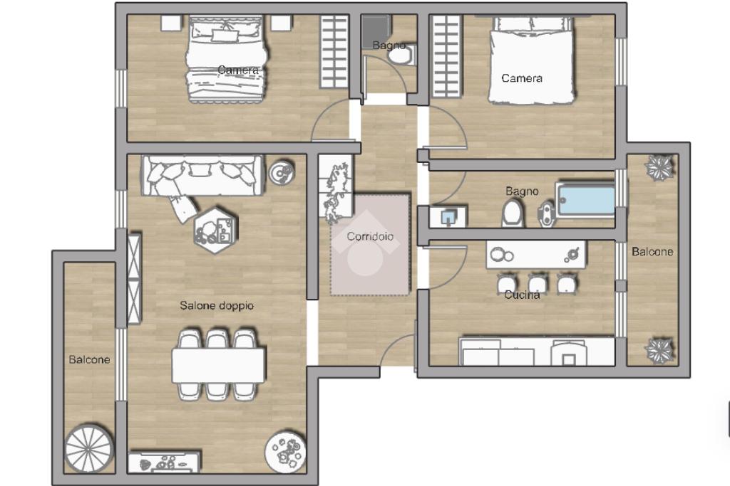 L'ampio corridoio, equipaggiato con un pratico armadio a muro, distribuisce elegantemente le zone notte: due camere da letto matrimoniali, ampie e confortevoli, con pavimentazione in pregiato parquet d'acero che aggiunge calore e stile. I due bagni completano l'offerta con praticitĂ , uno dei quali vanta una vasca idromassaggio e una finestra per un'illuminazione naturale, trasformando la routine quotidiana in un'esperienza di benessere.