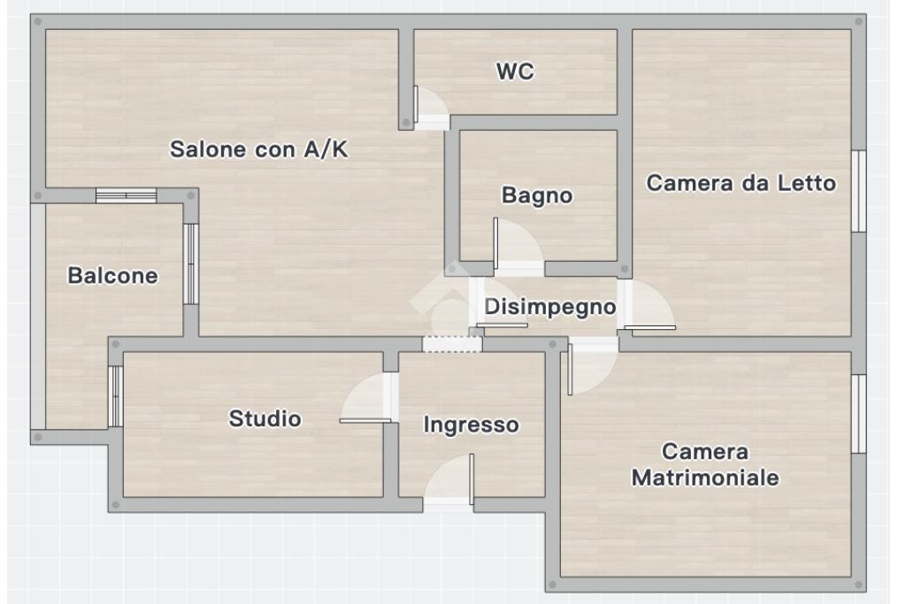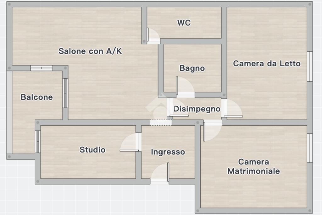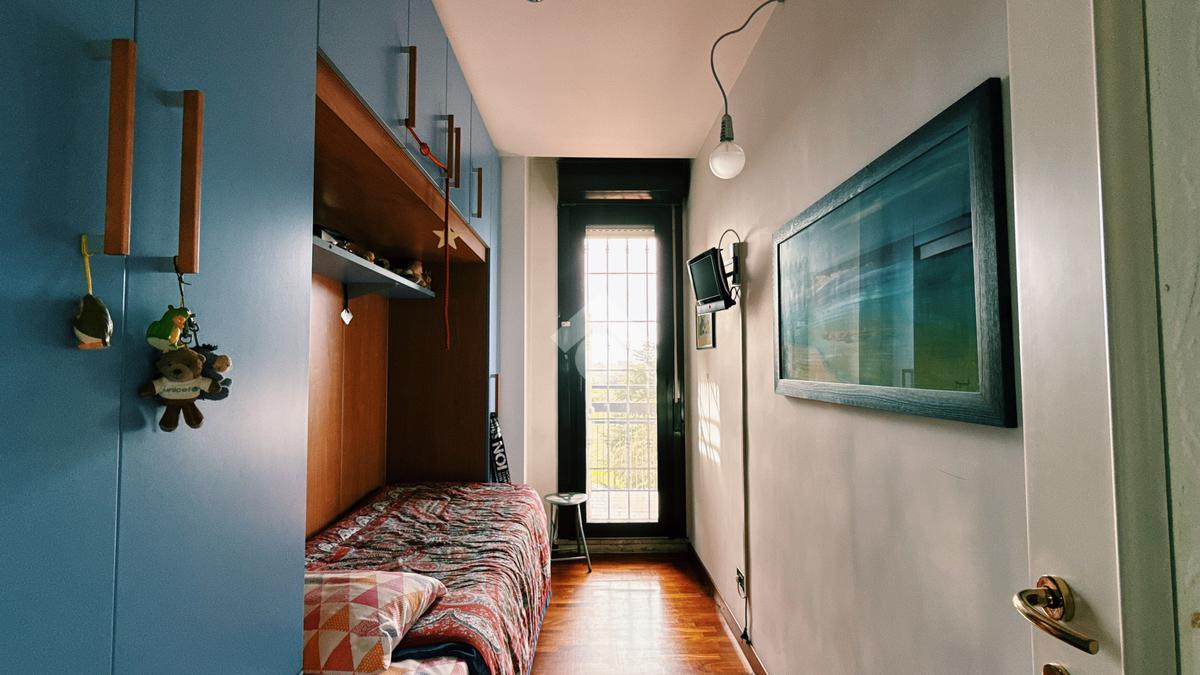La distribuzione interna è razionale e funziona davvero: due camere da letto, una cameretta (perfetta come studio, stanza bimbi o ospiti) e due bagni, un taglio che oggi è tra i piÚ richiesti perchÊ permette di gestire al meglio ritmi e spazi di una famiglia o di una coppia in smart working.