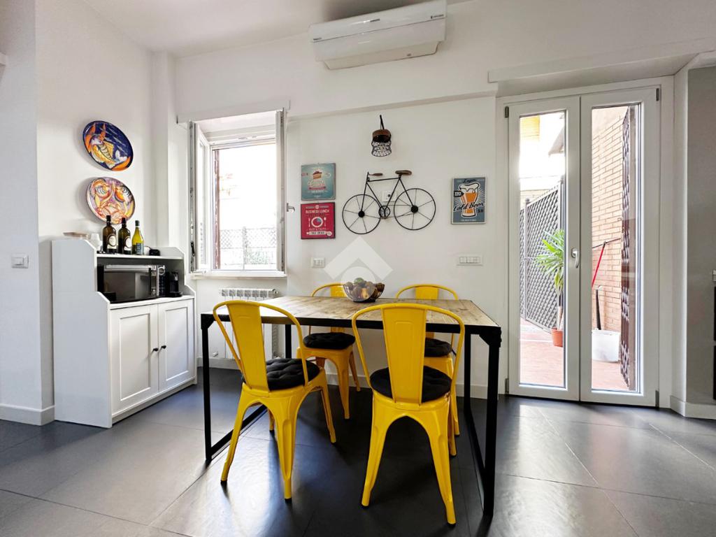 A soli 500 metri dalla fermata Metro C Mirti, comodissima per raggiungere il centro storico, proponiamo in vendita un appartamento piano terra angolare esposto a sud ed ad ovest, completamente ristrutturato, in un palazzo curato e signorile, realizzato in cortina, con accesso privato.